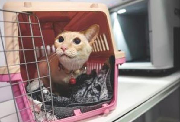 2月1日,一只小猫在中铁快运兰州西站营业部宠物交接区准备进入高铁宠物运输专用箱。铁路部门自1月28日起再次扩大高铁宠物托运服务试点范围,将办理宠物托运业务的高铁站总数扩大到110个。新华社记者 陈斌 摄