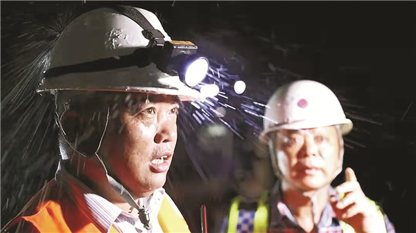 潘福平有近30年的隧道工作经验。2018年5月来到友谊隧道工作的他,常常5时就戴好口罩、安全帽,钻进隧道检查安全生产情况。施工掌子面突泥涌水问题频繁,在水帘洞一样的隧道里工作,对潘福平来说已经是家常便饭。
