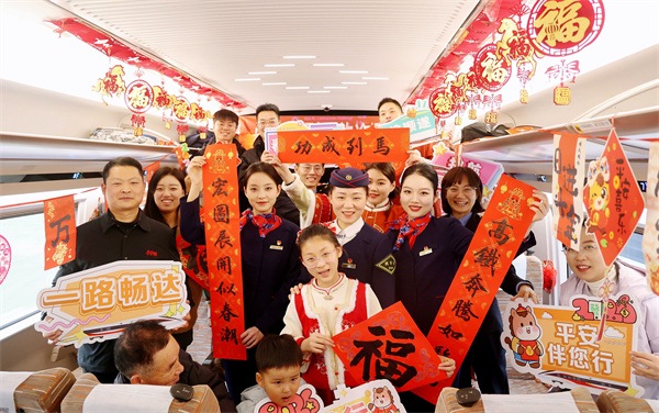 今年春运,铁路部门持续发力,在重点站车陆续推出“送万福到万家”“列车春晚”、优秀文化作品展览等活动,不断丰富旅客出行体验,全力打造平安、有序、温馨春运,让广大旅客带着温暖启程,在文化飘香的旅途中共赴锦绣中国年。