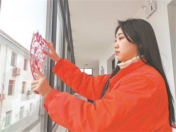 图③为南昌通信段职工在贴窗花,为办公区域增添浓浓年味。魏红豆 摄