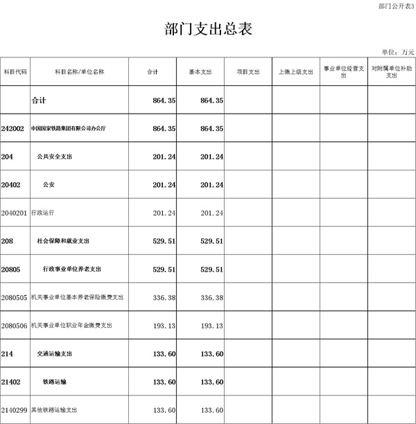 五、交通运输支出(类)铁路运输(款):反映与铁路运输相关的支出。