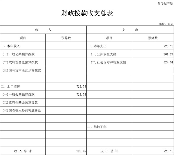 2022年财政拨款收支总预算725.75万元。收入构成均为上年结转。