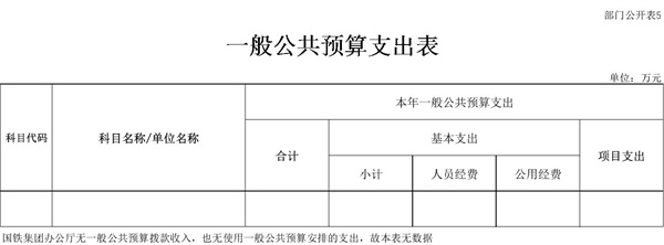 2022年国铁集团办公厅部门本年预算中未安排一般公共预算支出。