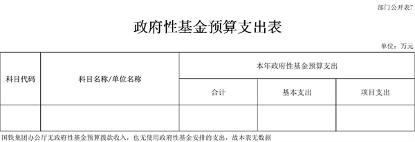 2022年国铁集团办公厅部门预算中未安排政府性基金预算支出。