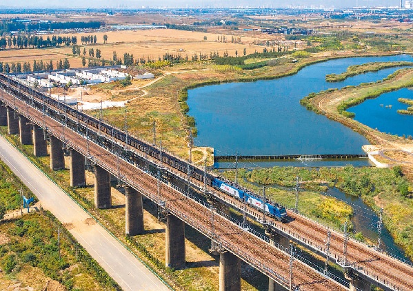 9月28日起,大秦铁路开展秋季集中修施工,完成换轨、换枕、更换道岔等作业,为即将到来的煤炭冬季运输打好基础。图为近日,一趟重载列车行驶在大秦铁路上。新华社记者 杨晨光 摄