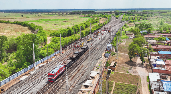 6月以来,齐齐哈尔工务段组织精兵强将,对平齐线榆树屯站站内道岔进行大修施工,全面提升站区设备保安全能力及运输效率,确保了运输组织和施工安全“两不误”。图为近日,榆树屯站站内道岔大修施工有序推进。原 勇 摄