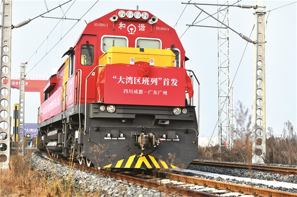 1月10日9时45分,首趟四川成都开往广东广州的“大湾区班列”从成都城厢站发出。该班列具有运量大、时效强和安全稳定等优势,对于加强四川地区与粤港澳大湾区的贸易交流、推动粤港澳大湾区和成渝地区双城经济圈互联互通具有重要作用。胡志强 摄