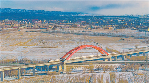 集大原高铁开通运营1个多月来,集宁工务段加大设备精调精整力度,确保线路设备质量优良,推动“冰雪游”持续升温。图为近日,一列动车组列车安全行驶在集大原高铁丰镇北至乌兰察布间。赵继伟 摄