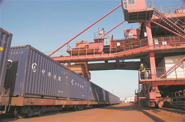 中国铁路上海局集团有限公司加快推进现代物流体系建设,统筹抓好货运组织,全力做好大宗货物运输和多式联运,服务区域经济社会发展。图为近日,徐州铁路物流中心在连云港港口组织装车。左壮 摄