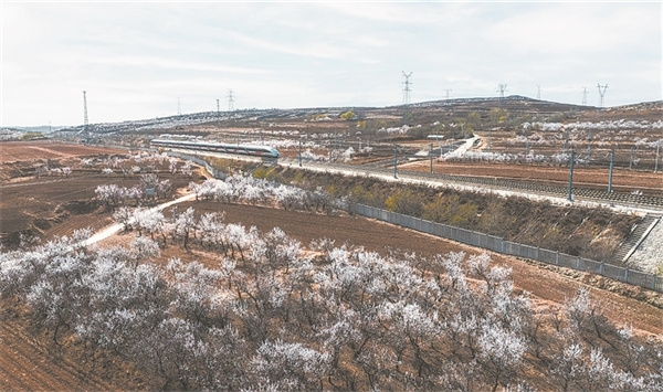春日高铁沿线风光无限,吸引游客踏青出游。中国铁路沈阳局集团有限公司科学安排运力,加强乘降组织,不断提升服务质量,努力让旅客出行体验更美好。图为近日,一趟复兴号动车组列车行驶在京哈高铁京沈段。张钧禹 摄