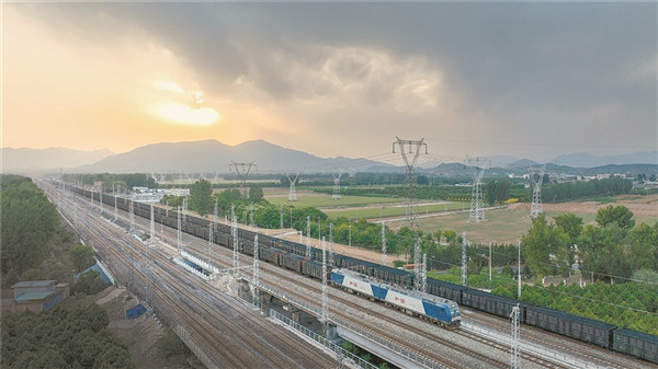 连日来,中国铁路太原局集团有限公司以大秦重载煤运通道为重点,加强运输组织,全力提升运量,确保对口供应电厂电煤库存充足,满足社会生产、生活需求。图为近日,一列万吨电煤重载列车行驶在大秦线茶坞站至平谷站区间。叶春蕾 摄