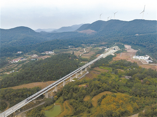连日来,中国铁路武汉局集团有限公司积极开展客运营销,充分发挥新线辐射带动效应,为地方经济社会发展注入强劲新动能。图为10月26日,一列复兴号动车组列车行驶在襄荆高铁荆门段。彭 琦 摄