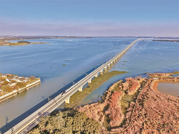 今年以来,中国铁路上海局集团有限公司持续深挖既有客运市场,打造“乐游长三角”等特色品牌,全方位提升旅客出行体验。图为近日,一列复兴号动车组列车行驶在沪苏湖高铁苏州市境内。周围 摄