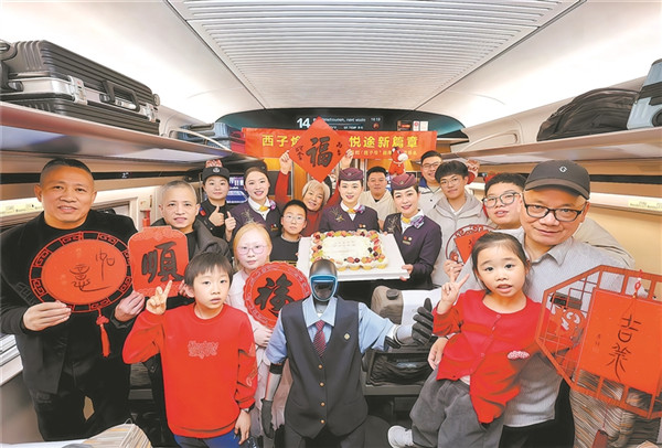 列车飞驰、一路欢歌,智“惠”旅途、笑语盈窗。科技走进车厢,年味与科技在此相遇,将传统文化的厚重与现代科技的便捷揉进每一段归程,让春运旅途更有温度、更具温情。杭州客运段“西子号”乘务组解锁智能服务新方式——人形智能机器人“福兴”为旅客提供问询解答等服务,在萌趣互动中为旅客送上新春祝福。周围摄于G41次列车