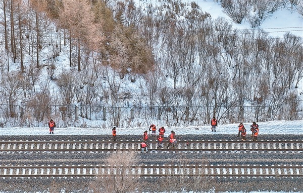 作为同江铁路口岸的后方运输主通道,绥佳铁路承担着黑龙江省近四分之一外调粮食、三分之一自产煤炭及部分中欧班列的运输重任。图为近日,绥化工务段职工对绥佳铁路圣浪至界山区间线路进行冻害整治。史家民 摄