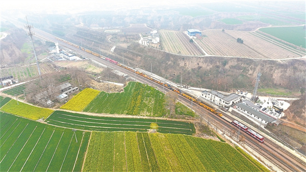 近日,中国铁路郑州局集团有限公司启动2026年上半年线路集中修,全力提升线路质量,为保障运输安全畅通筑牢坚实基础。图为3月14日,40余台大型养路机械组成“钢铁编队”,对陇海线上街至巩义东区间线路进行清筛作业。祁映辰 摄