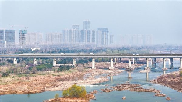 连日来,中国铁路郑州局集团有限公司精准调配运力,在开封、洛阳、三门峡、安阳等热门方向开行旅游列车,为旅客畅游春日中原提供便捷出行选择。图为近日,一列动车组列车行驶在徐兰高铁洛阳市境内。祁映辰 摄