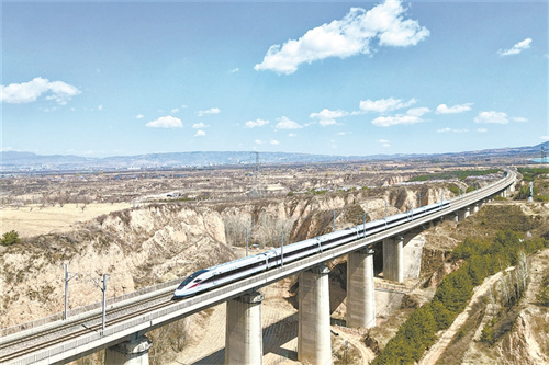 连日来,中国铁路太原局集团有限公司认真研判客流特点,科学配置运力资源,增开热门方向旅客列车,进一步满足旅客出行需求。图为近日,一列复兴号动车组列车行驶在石太客专阳泉至太原区间。申娟 摄