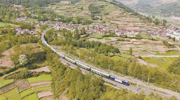 图为4月26日,一趟健康列车驶向凉山彝族自治州喜德县尼波镇。相欣龙 摄